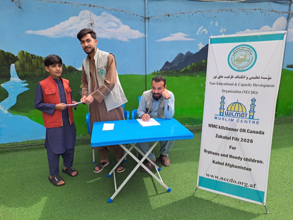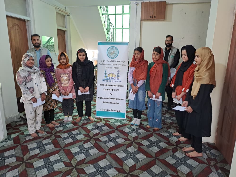 NECDO (Noor Educational & Capacity Development Organization) expresses its sincere appreciation to WMC Kitchener, ON, Canada, for their generous financial support, which enabled us to reach 368 orphaned and underprivileged children through cash assistance during Eid 2026 in Kabul, Afghanistan. This support allowed vulnerable children to celebrate Eid with dignity and meet their essential needs. We pray that Allah (SWT) accepts these charitable contributions and rewards all donors in this life and the hereafter.